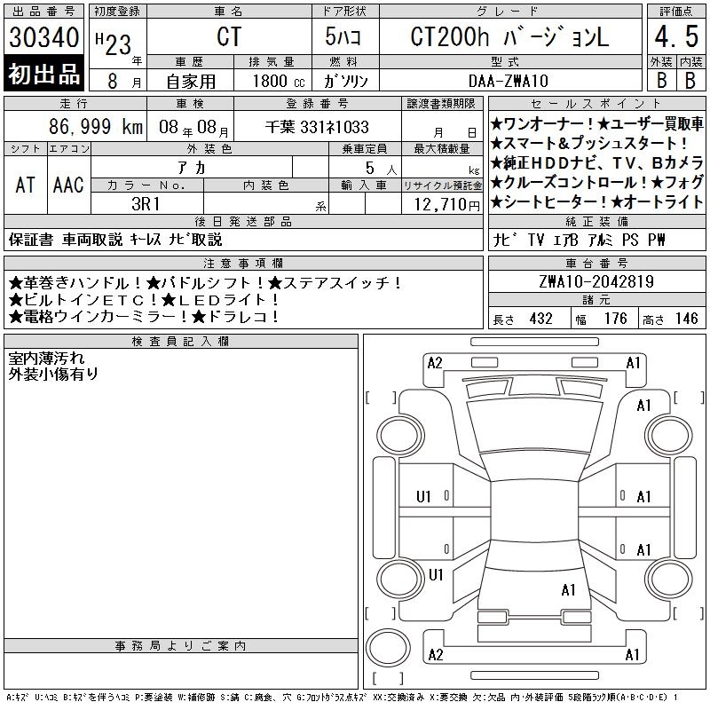 LEXUS CT CT200H VERSION L - лот 30340
