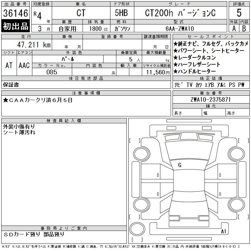 LEXUS CT CT200H VERSION C - лот 36146