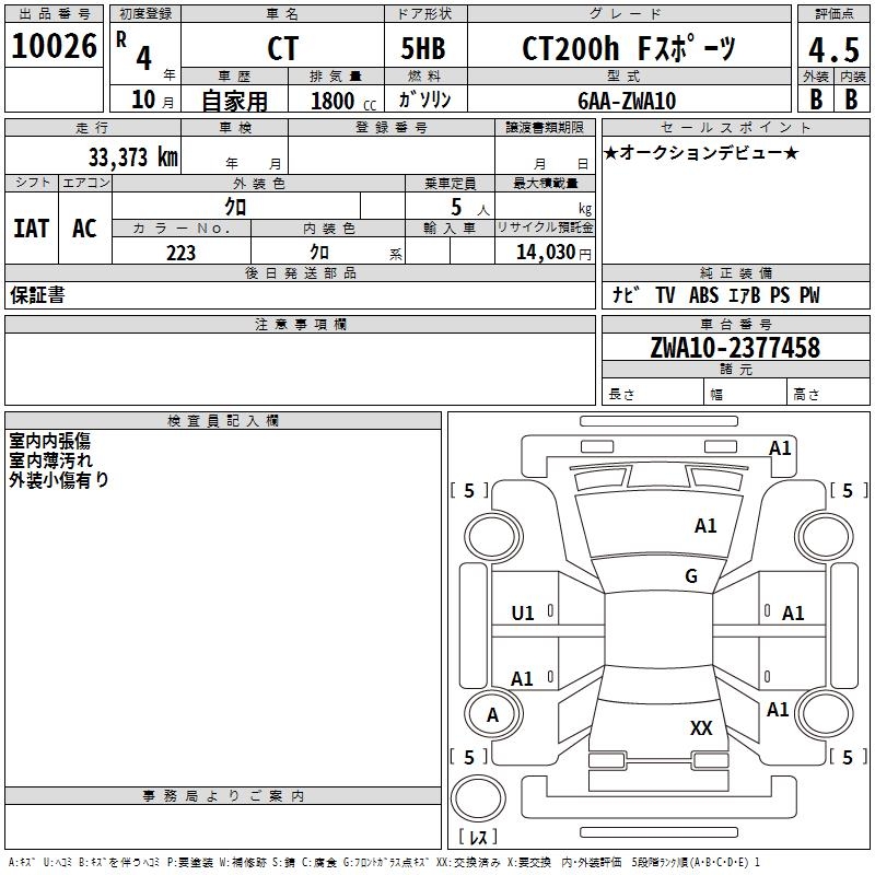 LEXUS CT CT200H F SPORT - лот 10026