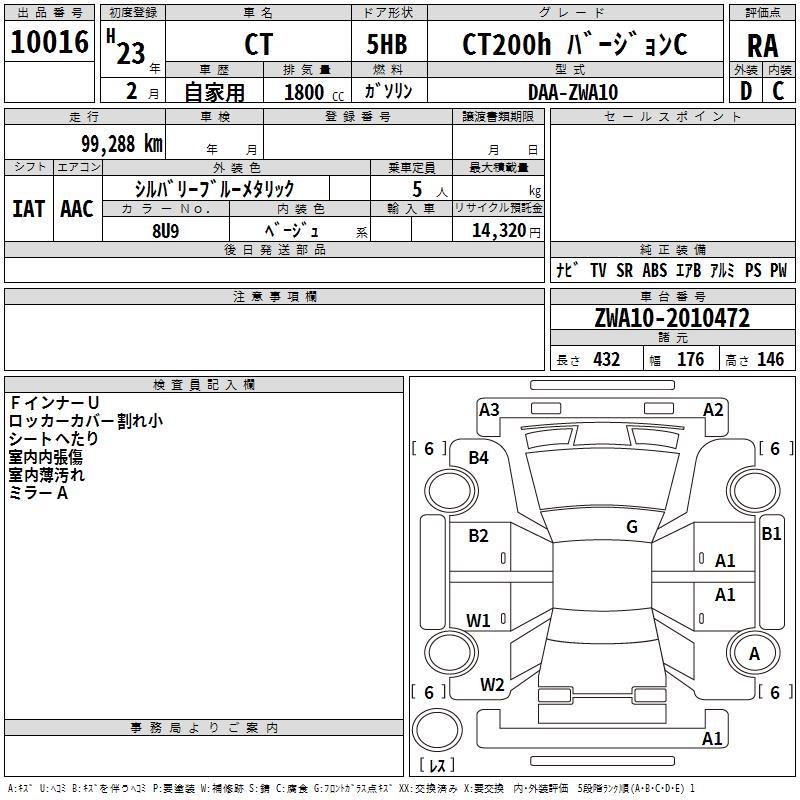 LEXUS CT CT200H VERSION C - лот 10016