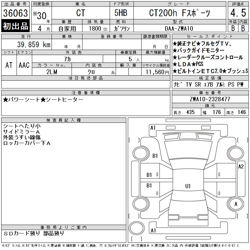 LEXUS CT CT200H F SPORT - лот 36063