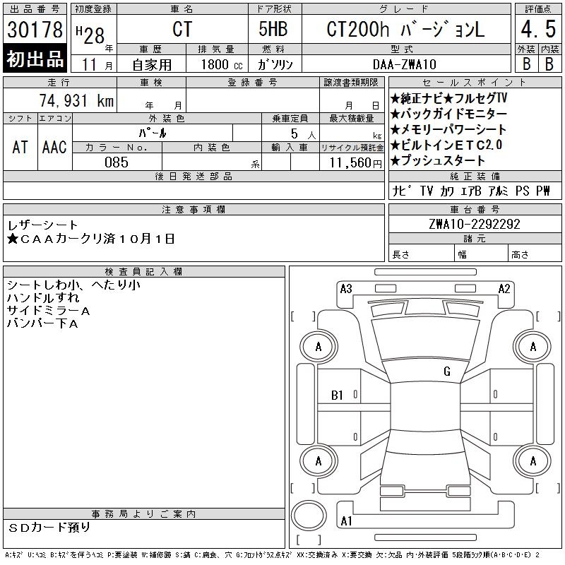 LEXUS CT CT200H VERSION L - лот 30178