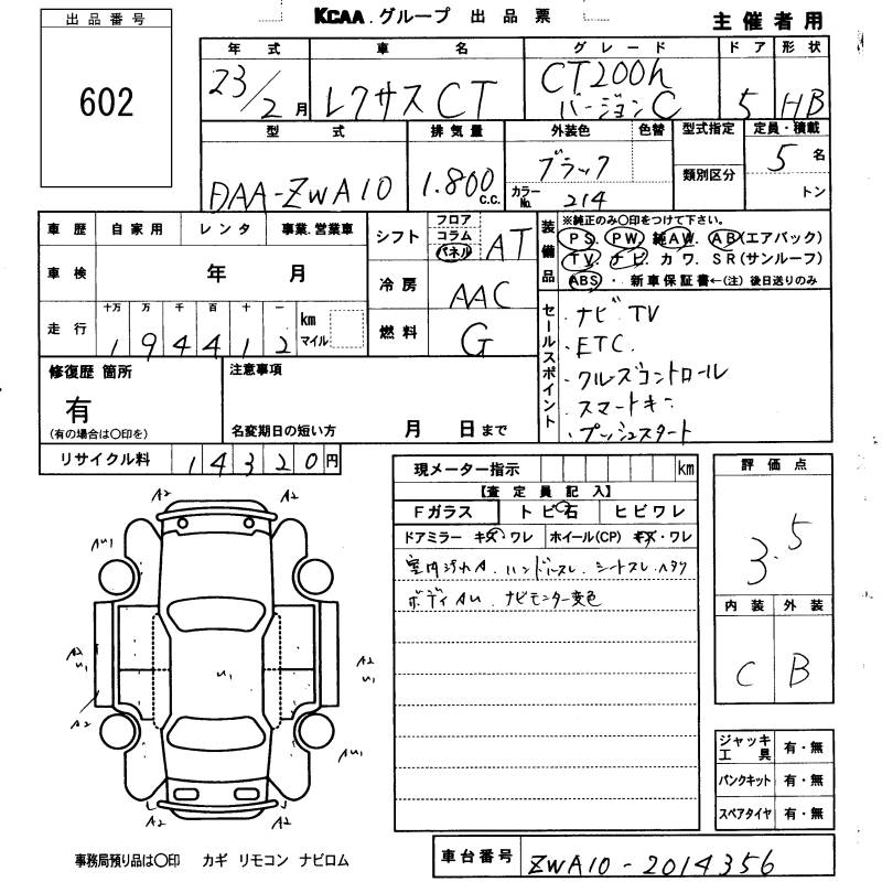 LEXUS CT CT200H VERSION C - лот 602