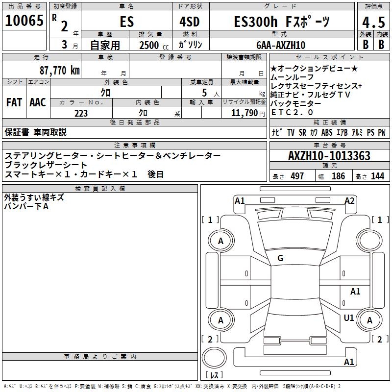 LEXUS ES ES300H F SPORT - лот 10065