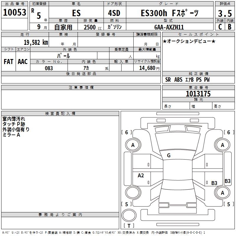 LEXUS ES ES300H F SPORT - лот 10053