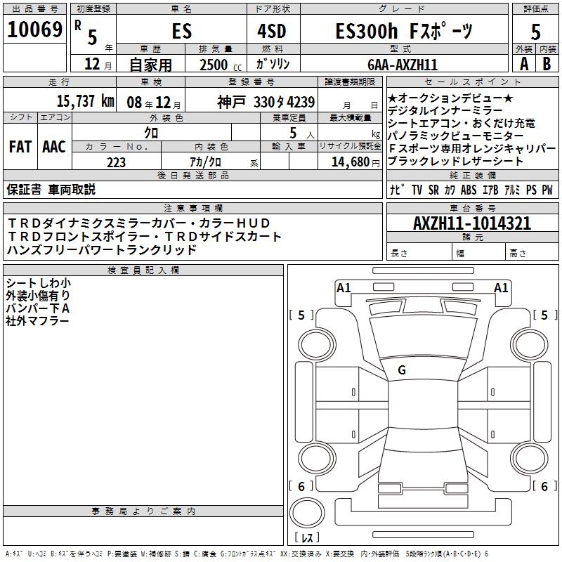 LEXUS ES ES300H F SPORT - лот 10069