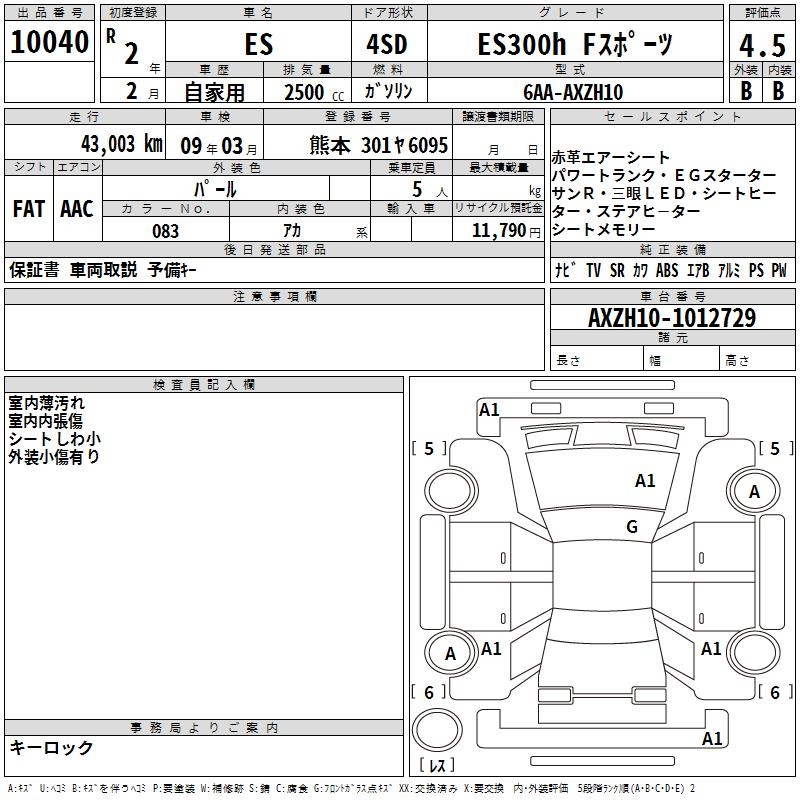 LEXUS ES ES300H F SPORT - лот 10040