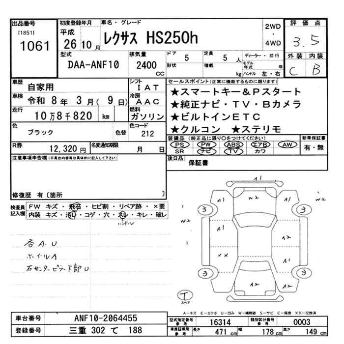 LEXUS HS - лот 1061