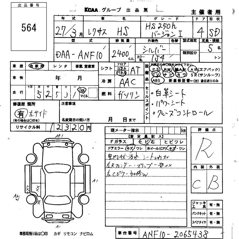 LEXUS HS HS250H VERSION I - лот 564