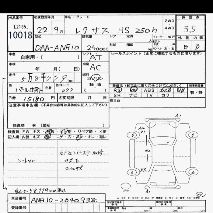 LEXUS HS - лот 10018