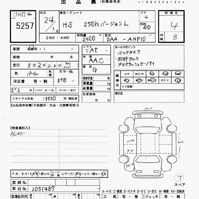 LEXUS HS - лот 5257