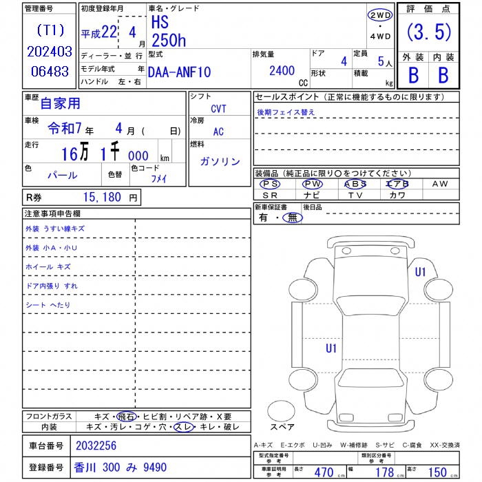 LEXUS HS - лот 11846
