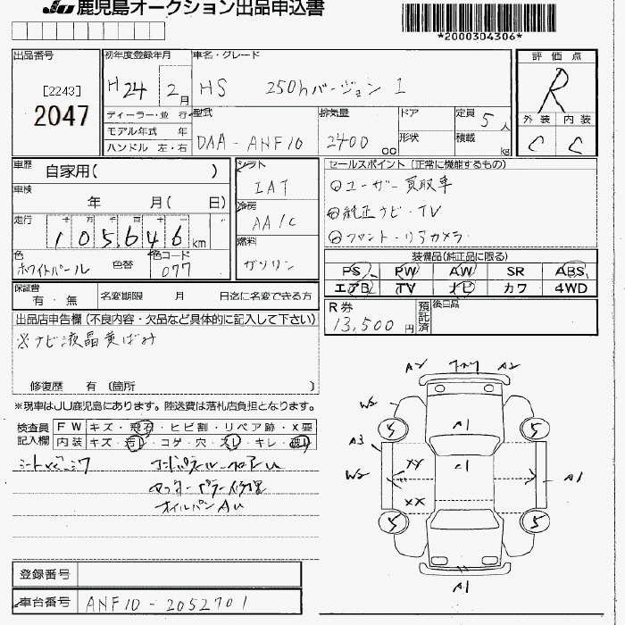 LEXUS HS - лот 2047