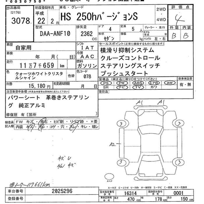 LEXUS HS - лот 3078