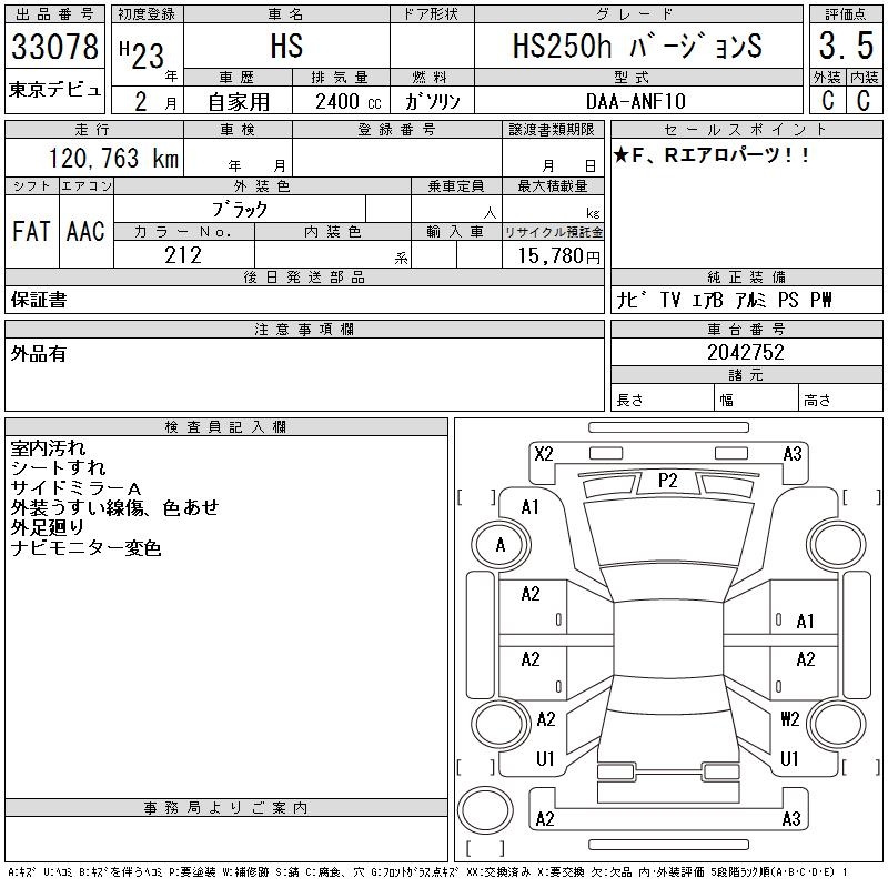 LEXUS HS - лот 33078