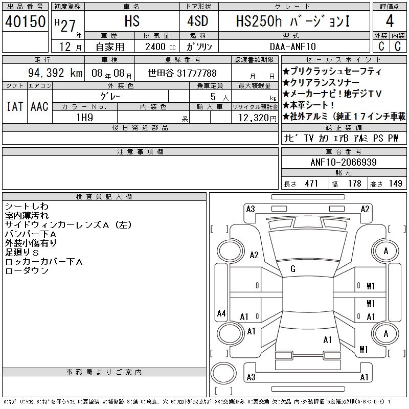 LEXUS HS - лот 40150