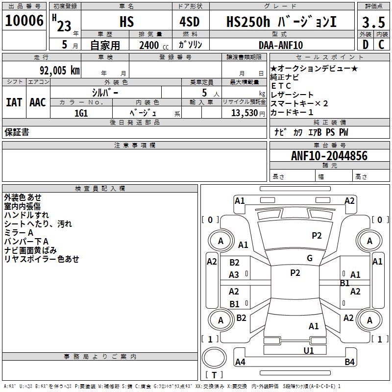 LEXUS HS - лот 10006
