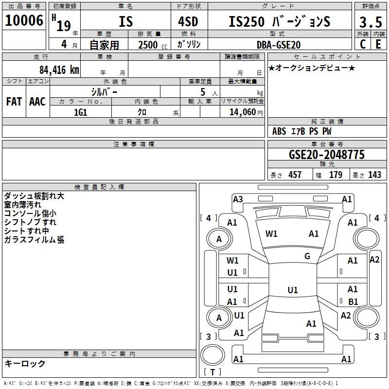 LEXUS IS IS250 VERSION S - лот 10006