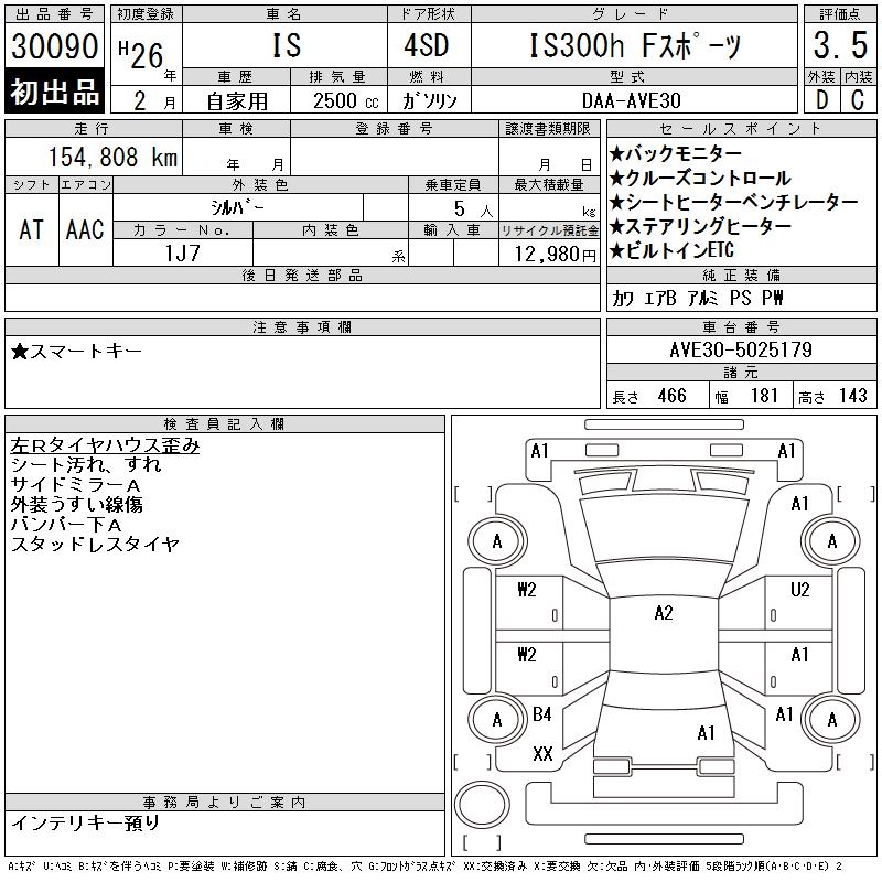LEXUS IS IS300H F SPORT - лот 30090