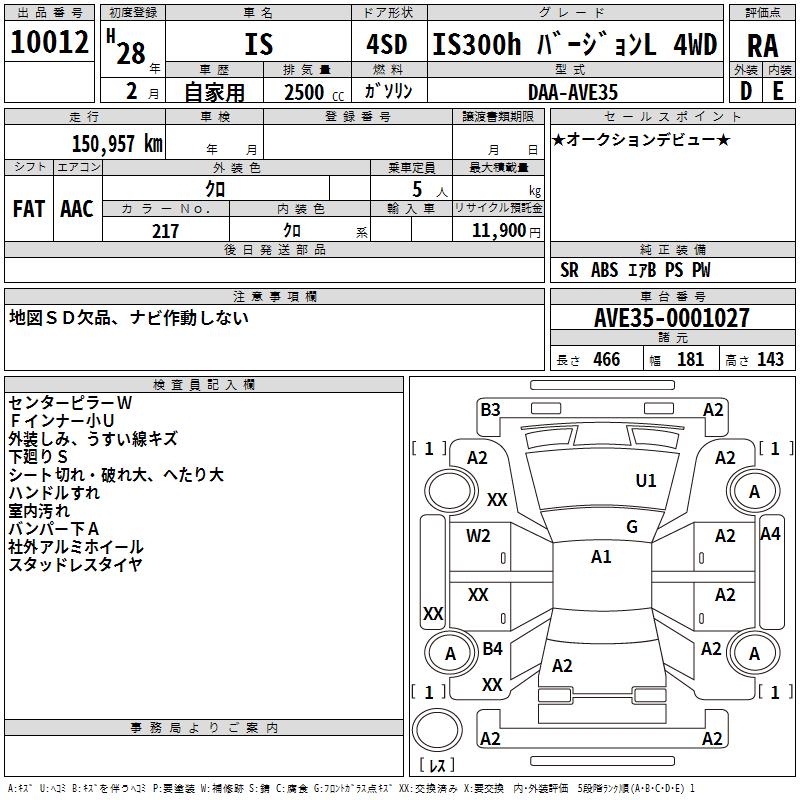 LEXUS IS IS300H VERSION L 4WD - лот 10012