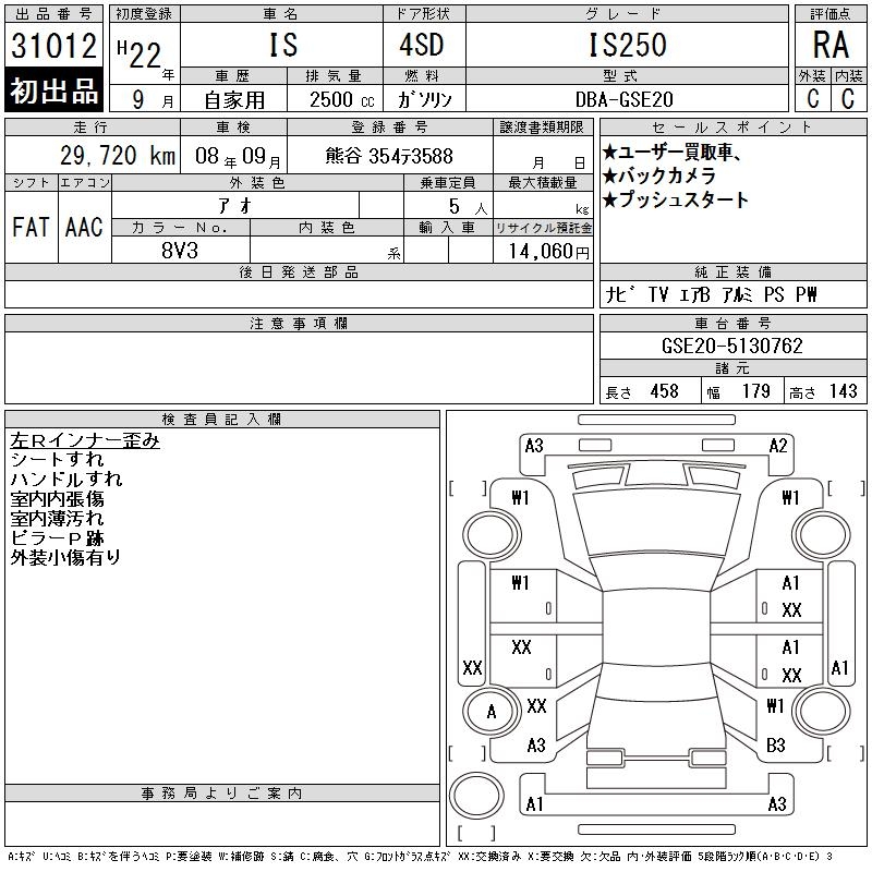 LEXUS IS IS250 - лот 31012