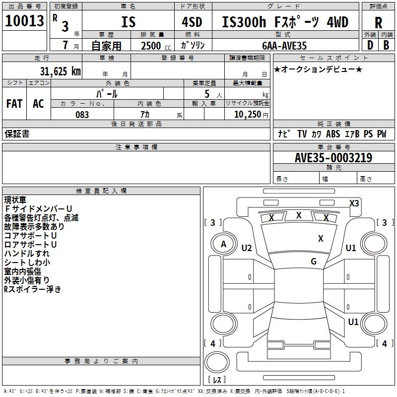 LEXUS IS IS300H F SPORT 4WD - лот 10013