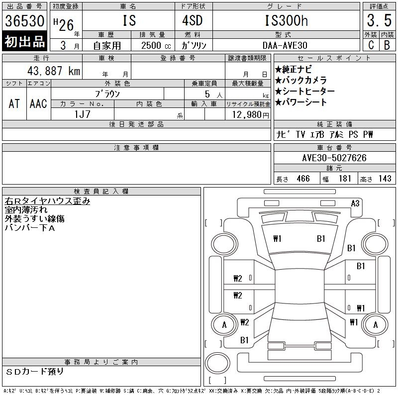 LEXUS IS IS300h - лот 36530