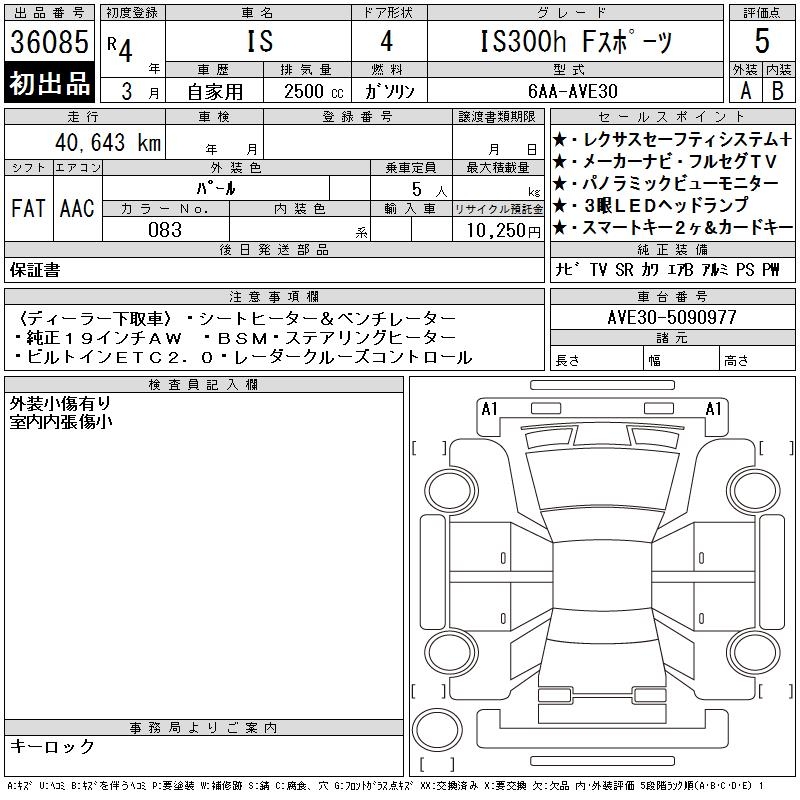 LEXUS IS IS300H F SPORT - лот 36085