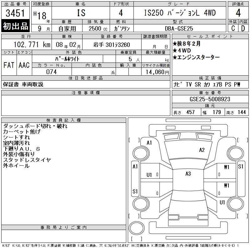 LEXUS IS IS250 VERSION L 4WD - лот 3451