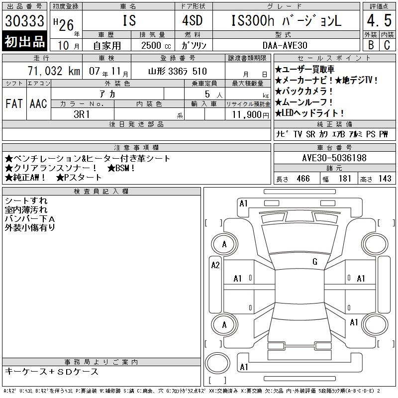 LEXUS IS IS300H VERSION L - лот 30333