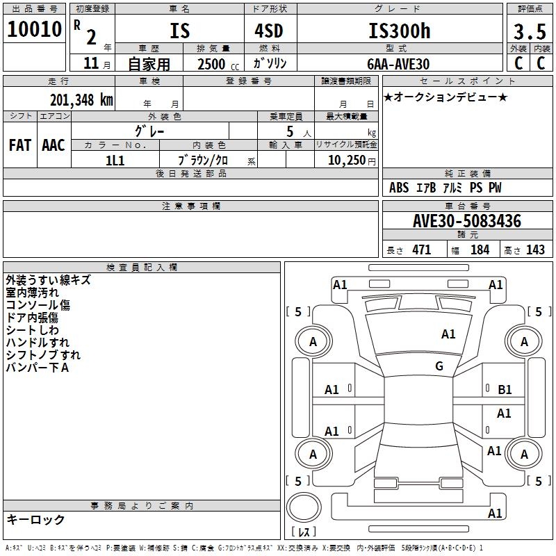 LEXUS IS IS300h - лот 10010