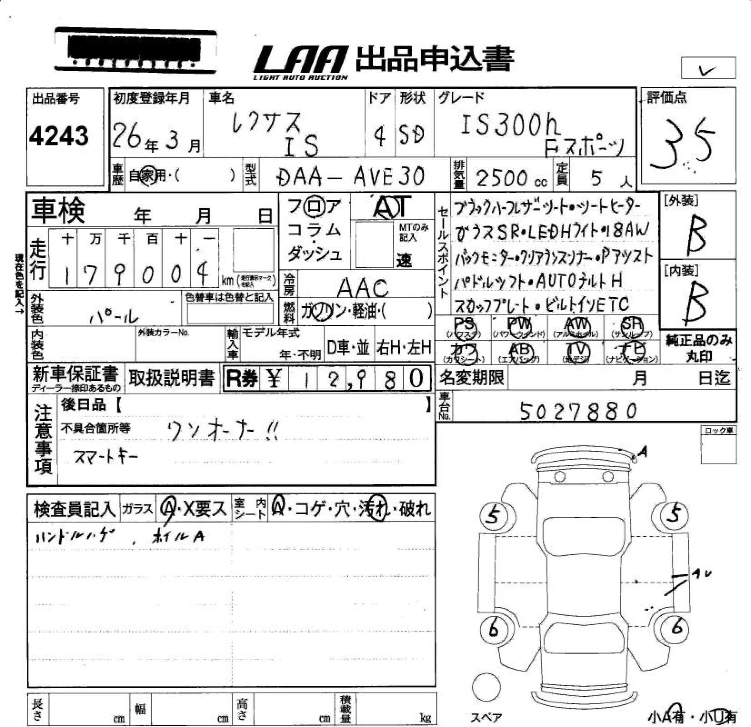 LEXUS IS IS300H F SPORT - лот 4243