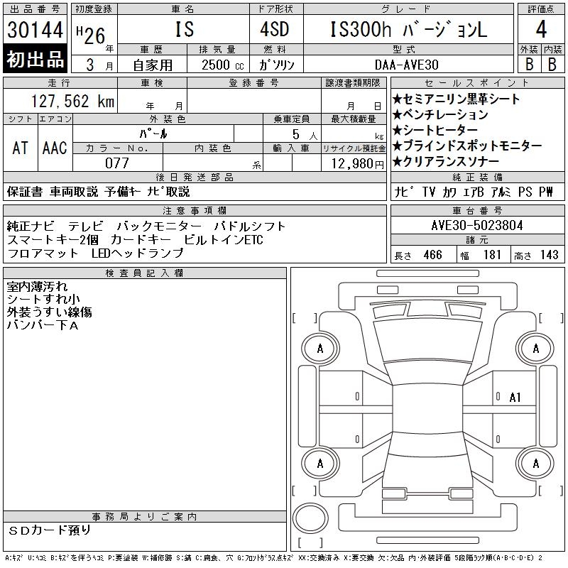 LEXUS IS IS300H VERSION L - лот 30144