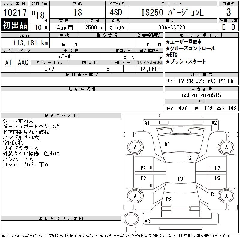 LEXUS IS IS250 VERSION L - лот 10217