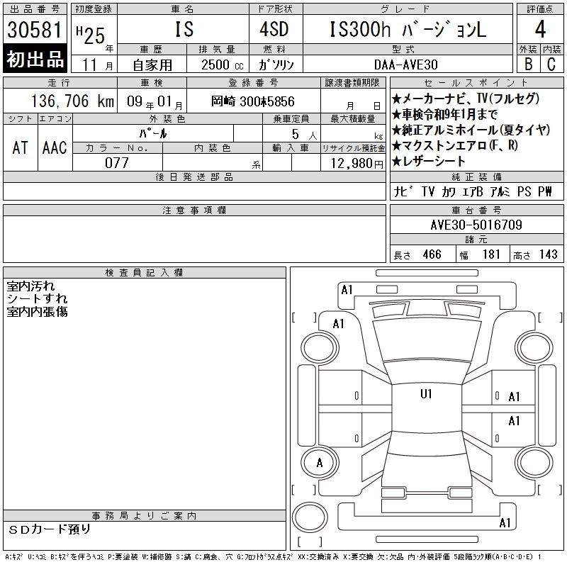 LEXUS IS IS300H VERSION L - лот 30581