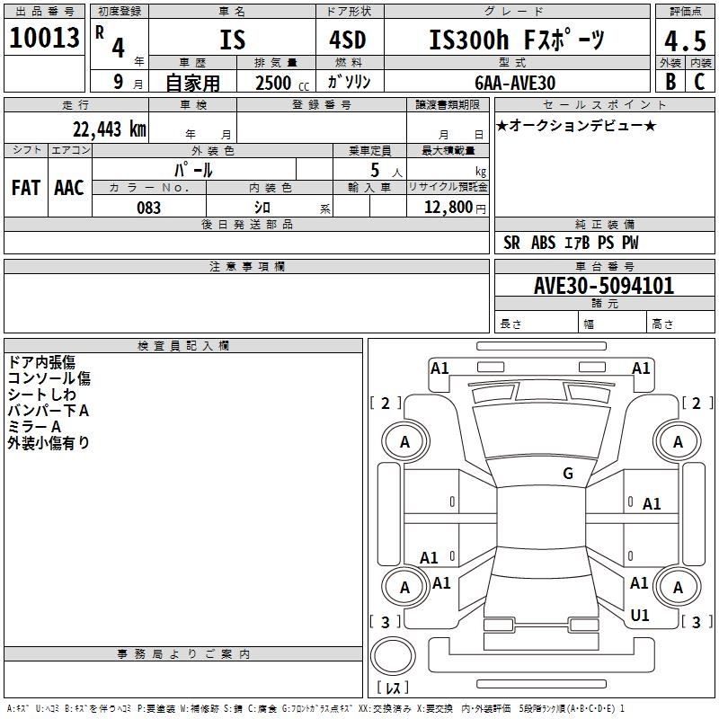 LEXUS IS IS300H F SPORT - лот 10013