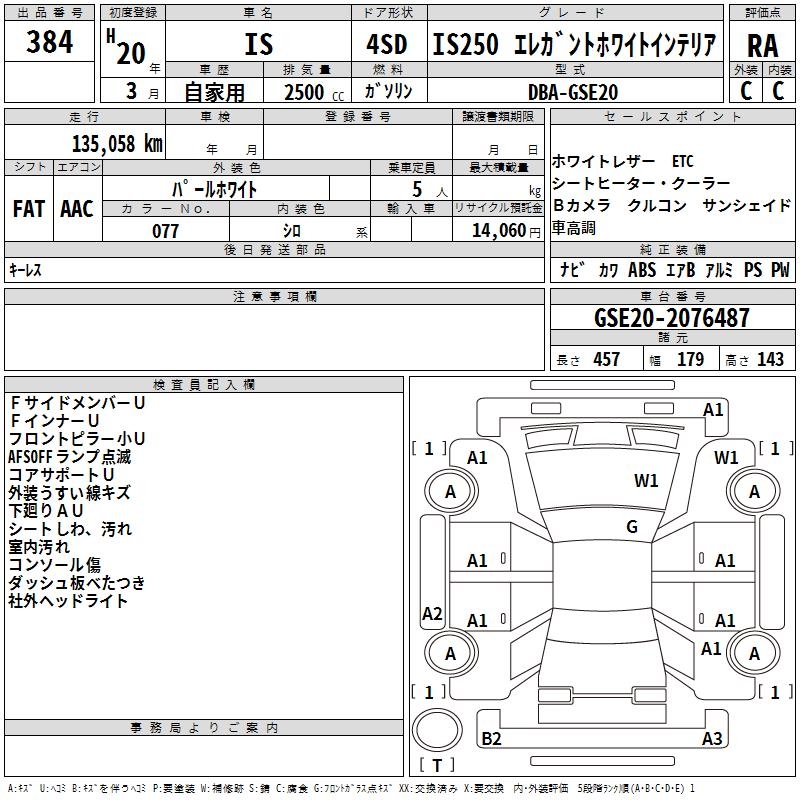 LEXUS IS IS250 ELEGANT WHITE INTERIOR - лот 384
