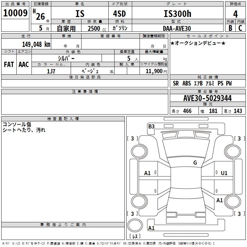 LEXUS IS IS300h - лот 10009