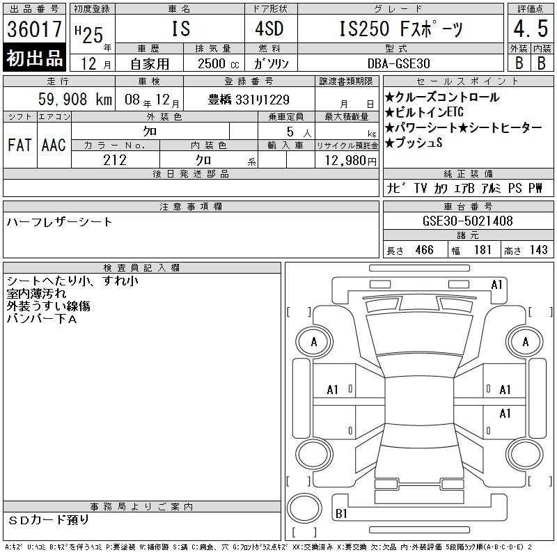 LEXUS IS IS250 F SPORT - лот 36017