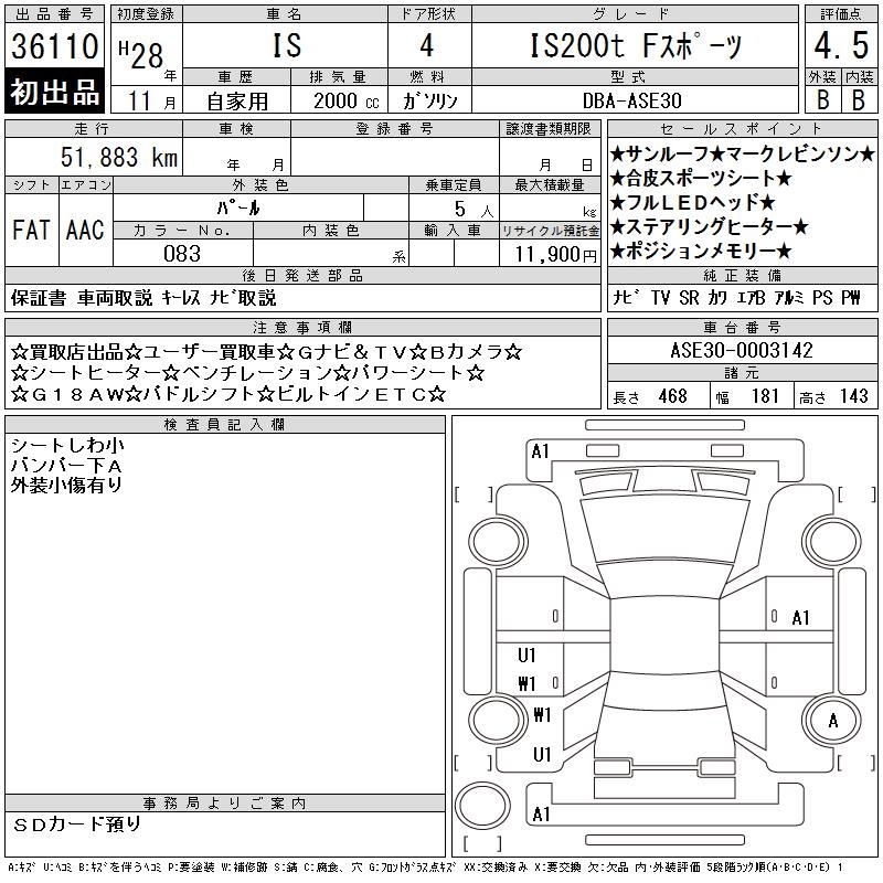 LEXUS IS IS200T F SPORT - лот 36110