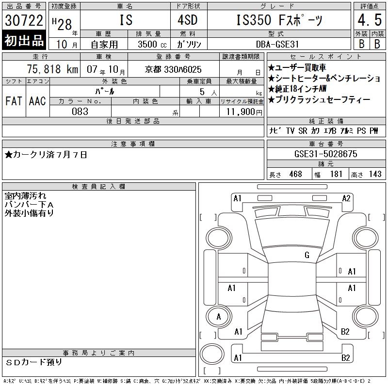 LEXUS IS IS350 F SPORT - лот 30722