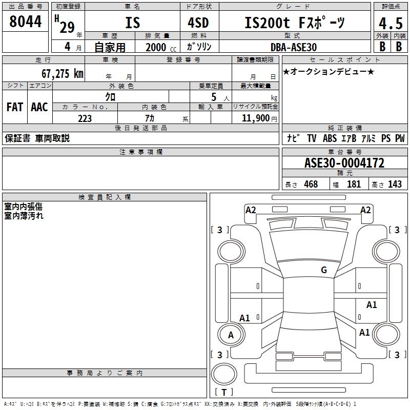 LEXUS IS IS200T F SPORT - лот 8044
