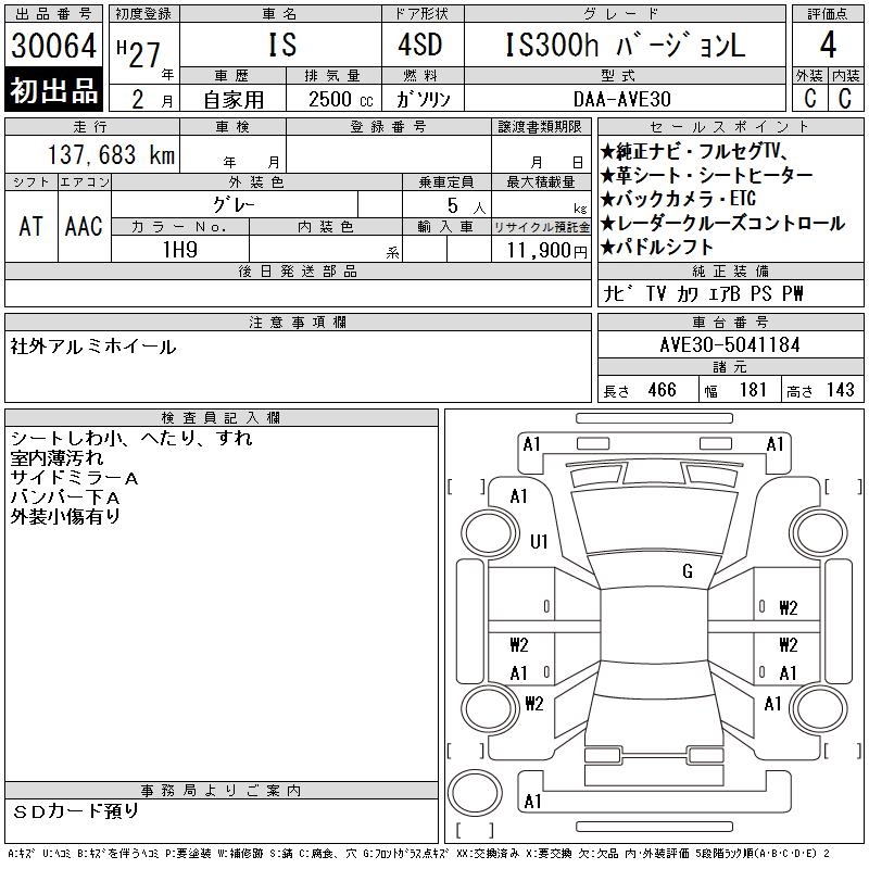 LEXUS IS IS300H VERSION L - лот 30064