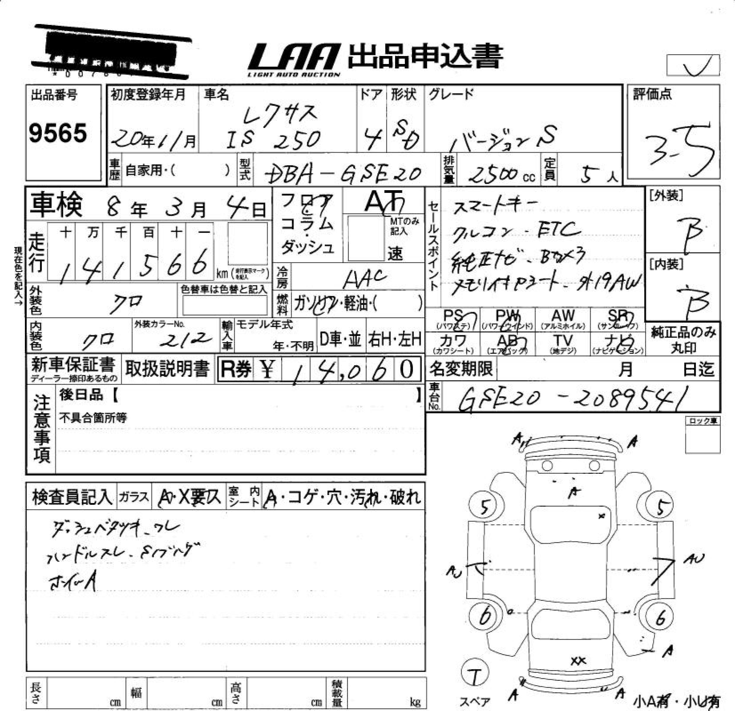 LEXUS IS IS250 VERSION S - лот 9565