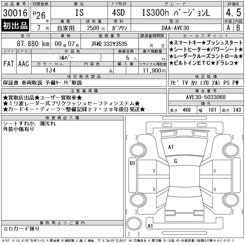 LEXUS IS IS300H VERSION L - лот 30016
