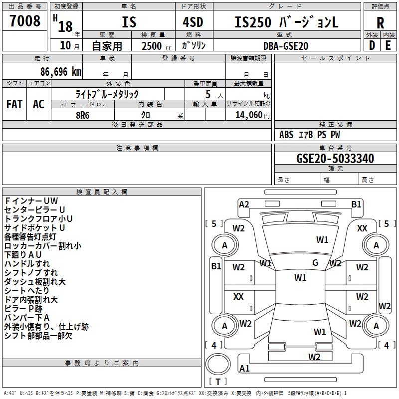 LEXUS IS IS250 VERSION L - лот 7008