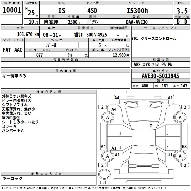 LEXUS IS IS300h - лот 10001