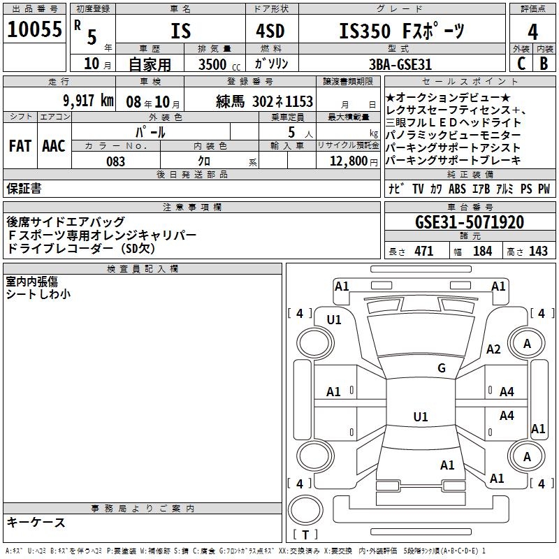 LEXUS IS IS350 F SPORT - лот 10055