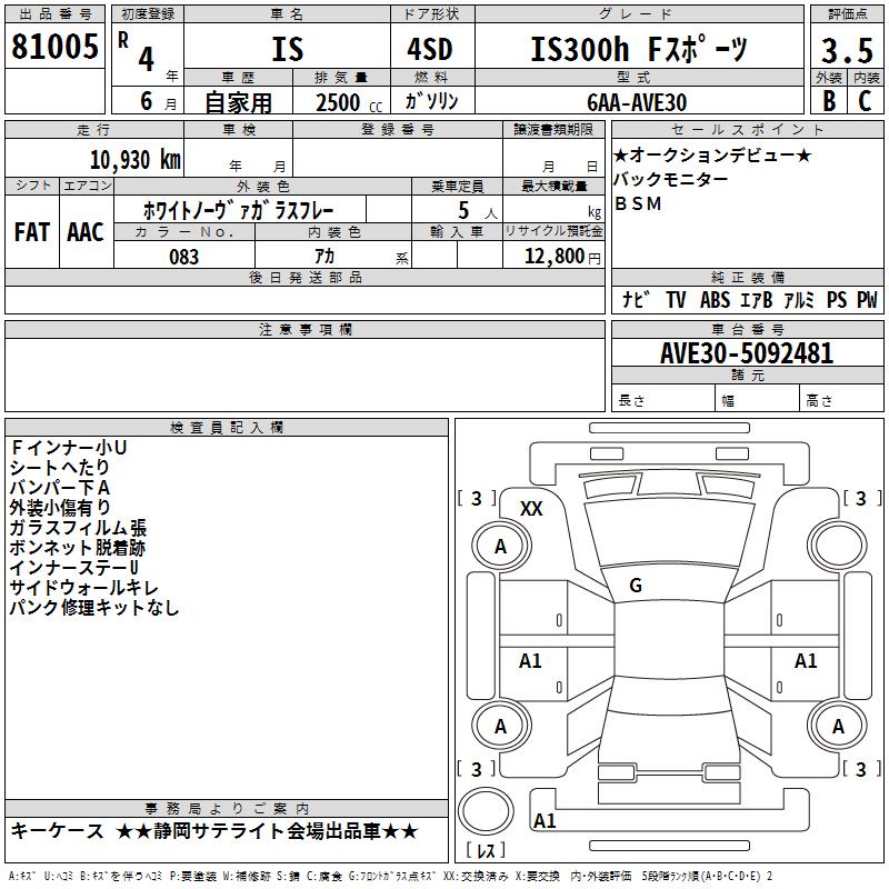 LEXUS IS IS300H F SPORT - лот 81005
