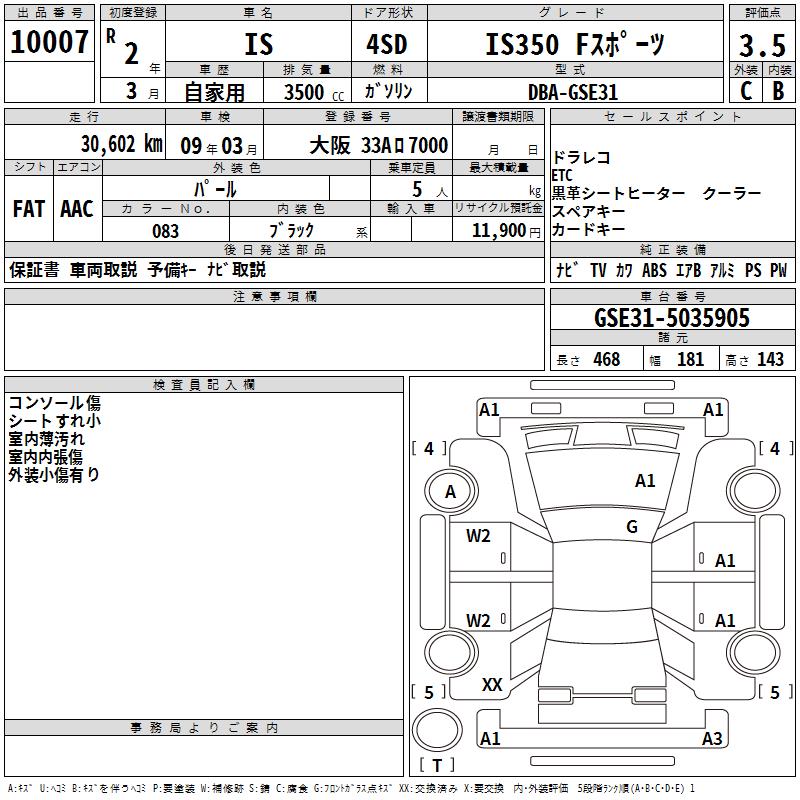 LEXUS IS IS350 F SPORT - лот 10007